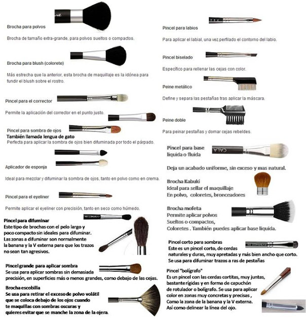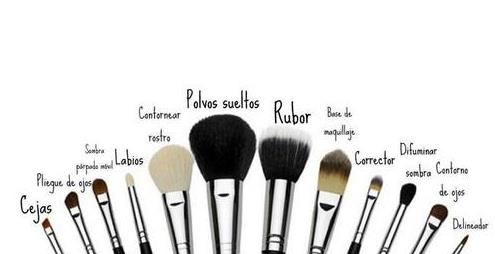 los rubores, maquillaje en polvo, sombras y Las brochas de pelo artificial o sintético las utilizaremos con los productos en crema y grasos tales como
