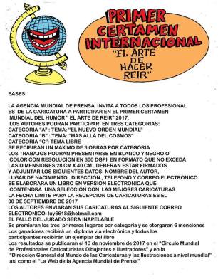 E hizo una gran convocatoria para la realización de la PRIMERA EDICION EN SU CERTAMEN INTERNACIONAL DE CARICATURA «EL ARTE DE HACER REIR» 2017
