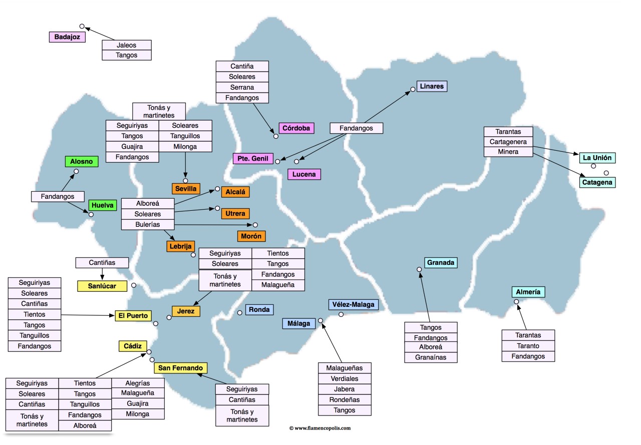 Hablar de una geografía del Flamenco en España es sobre todo hablar de Andalucía. Andalucía y después de todo el resto de la geografía española peninsular. Las razones que forman parte importante de diversos desarrollos históricos y demográficos son muy conocidas.