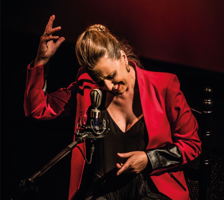 David. Lo primero fue hablar con Jesús Torres. Sabes que cuando las cosas son fáciles, porque tienes unos recursos suficientes para decir llamo a tres guitarras cuatro cantaores, dos percusiones, salen cosas maravillosas. Pero cuando no tienes los recursos suficientes y tienes que intentar retos y me encantan los retos, entonces cuatro músicos son muy pocos, aunque hoy en día lo vemos de una manera bastante más normal que antiguamente que no era tan normal hacer algo con solo cuatro músicos. Jesús y yo queríamos probar cosas nuevas. Gema fue en la primera que pensé y cuando me dijo que sí, me dije, es ella. Yo ya había trabajado con Gema, y lo que tú dices, tiene una técnica vocal asombrosa, ahí estuvo una hora y cuarto sin parar. La técnica vocal es importantísima, le permite cantar hora y cuarto sin parar un segundo, cante tras cante, tocar palmas, subirla a mis hombros, hay que tener mucha técnica y sensibilidad. Ella es la perfecta.