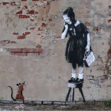 Irreverente sería la palabra con la que puedo definir a Bansky, este gran artista urbano inglés, conocido como el chico malo del arte que no le importa romper la ley para mostrar lo que puede expresar. Considerado hoy por hoy como el Artista Graffitero más famoso del mundo, a pesar del misterio que lo envuelve como la ilegalidad de su trabajo y contra todo pronóstico él, envalentonado y polémico hasta la médula, cuya identidad sigue siendo un secreto a voces y que sin embargo sus graffitis son los que lo pintan de cuerpo entero en donde hasta en la tierra de ciegos en donde el tuerto es rey lo pueden apreciar porque sus obras para quien las vea son realmente impactantes. Sus obras son Graffitis que no necesitan publicidad ni aprobación ya que sólo buscan la reflexión de quienes las ven.