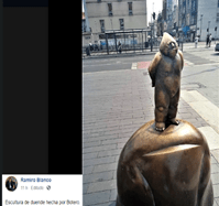 Te tropezaras con la estatua de la libertad pero sonriente con más dinamismo.