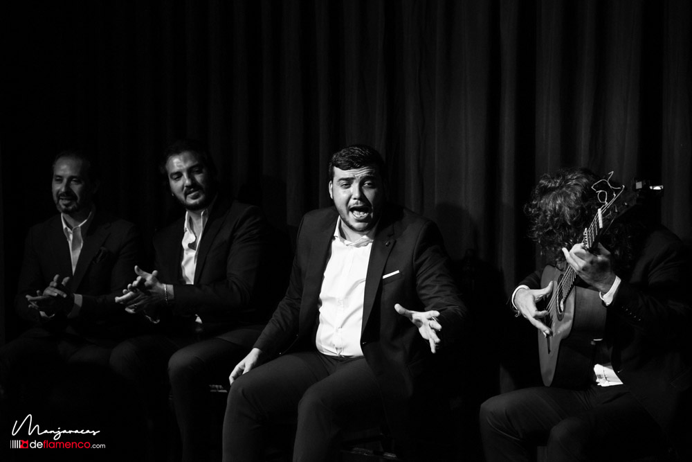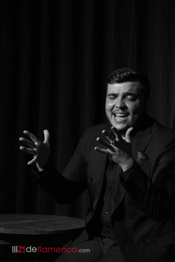 Juanfran Carrasco con solo 23 años ya es todo un maestro. Domina los registros de su voz, canta con el cuerpo entero, aún cuando está sentado. Sus maneras derrochan flamencura, tiene don de gentes, poder de atracción, deleita, engancha. Sus manos tienen el tipo de expresividad que al Greco hubiera encantado pintar. Vive el flamenco como una filosofía de vida, como una inmersión total en lo jondo. Su cantaor de culto Manolo Caracol, su inspiración su maestro José de la Tomasa. Canta desde siempre, desde que no levantaba un palmo del suelo. La TV extremeña lo captó a los 15 años para su programa Duende Flamenco. Y a los 17 dio el salto a Sevilla, a la escuela de Cristina Heeren, porque sabía que además de tener el don de una voz flamenca, la voz hay que construirla. Ahí es donde tuvo como maestro entre otros a José de la Tomasa. Y a partir de ahí a cantar por peñas, tablaos de tronío y festivales. Recuerda momentos de emoción, como cantarle a Farruquito o actuar recientemente en la inauguración de curso del Malacate Flamenco de la Unión, que la sierra minera unionense tiene efecto de imán cuando se trata de cantes puros y allí estuvo con El Perla a las cuerdas, en la Liga de Vecinos de Portmán, una sede con solera. Borda la soleá, disfruta a tope con los fandangos y los tangos, transmite su alta capacidad para disfrutar como nadie. Un crack y la vida por delante. Esa noche del sábado brilló con luz solar.