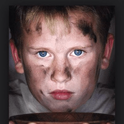En ocasiones los maquinistas dejan al niño subir a ver la cabina de tren y el vagón dónde sacan el carbón para alimentar al monstruo, en ocasiones mira el interior de la máquina y ve el infierno lleno de llamas, en todas esas oportunidades termina tiznado y con su carita casi negra por el polvo negro que se expande allí.