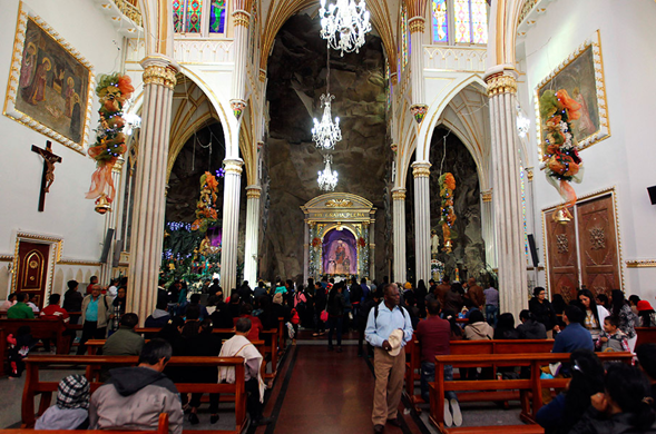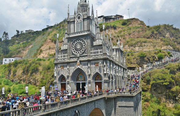 El santuario de las Lajas, considerado “el milagro de Dios sobre el abismo”, es visitado cada año por 750.000 feligreses, principalmente colombianos y ecuatorianos.