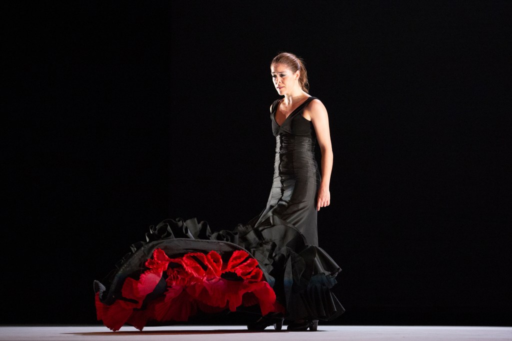 El rojo representa la totalidad de la mujer. El negro es el luto por ese maltrato hacia ella, el abuso por parte del hombre, del maltrato que da paso a la bata de cola, que simboliza la deformación de la mujer. La bata de cola me la ha hecho mi abuela, que ha sido mi costurera en exclusiva desde niña. En principio Juan no quería el número de la bata, porque decía que no estaba en la línea del personaje. Pero yo sabía que esa bata tenía que estar, por lo que significaba para mí. Y dándole vueltas, para encontrarle sitio dentro de la deformación de la mujer, ésta tenía que estar también en la bata de cola, era la única forma de encajarla. La semana anterior al estreno logramos ver lo que realmente significaba y dijimos ¡adelante.! La bata habla de una situación dramática, del poder de los hombres y de ese hombre sobre ella. Y cuando baila la soleá ya no es ella, ya está deformada.