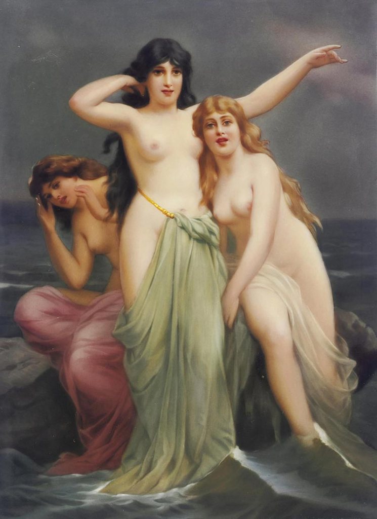 Cansado de la triple tarea de pintar, ilustrar y enseñar, y probablemente también de escapar del erudito Berlín, Thumann dejó su cátedra en la academia local en1887 y luego pasó la mayor parte de los próximos tres años en Italia. Entre otras imágenes también hay una «pintora de jarrones» magistralmente ejecutada, a quien su amada escucha en el trabajo, una imagen de sorprendente belleza de color, y también una «psique» encantadora y amable que mira su imagen en el espejo de una fuente, finalmente como homólogo a la «Parzen» tres «sirenas», un grupo de mujeres no menos interesante, en el que la artista que regresó a Munich el otoño pasado todavía estaba trabajando.