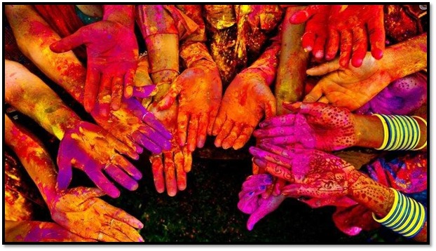 La celebración original consiste esencialmente en lanzarse polvos de colores brillantes y agua coloreada unos a otros, como símbolo de felicidad por la llegada de la primavera, tratando de emular los alegres colores de las flores que nacerán durante la estación venidera. Es un momento mágico, de alegría, diversión, música y danza, pero sobre todo espiritual, ya que durante la víspera del festival, se encienden hogueras como conmemoración del triunfo del “bien” frente al “mal”.