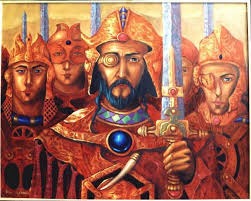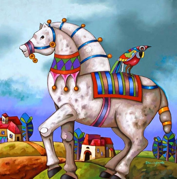 El Maestro Efraín Saldaña, su arte es un mundo mágico en pinturas y esculturas brillantes resaltando reinas, castillos, caballitos y sus especiales aves que lo destacan como un dios en su mundo.