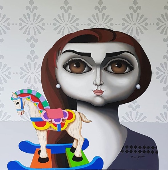 Los colores de sus obras te transportan a los colores de la niñez que irradian felicidad y alegría en ese mundo mágico de los niños llenos de sueños con cohetes, reinas, carritos, casas y ojos mirándonos con asombro. Su estilo casi único, nos llena de sentimientos tan especiales.