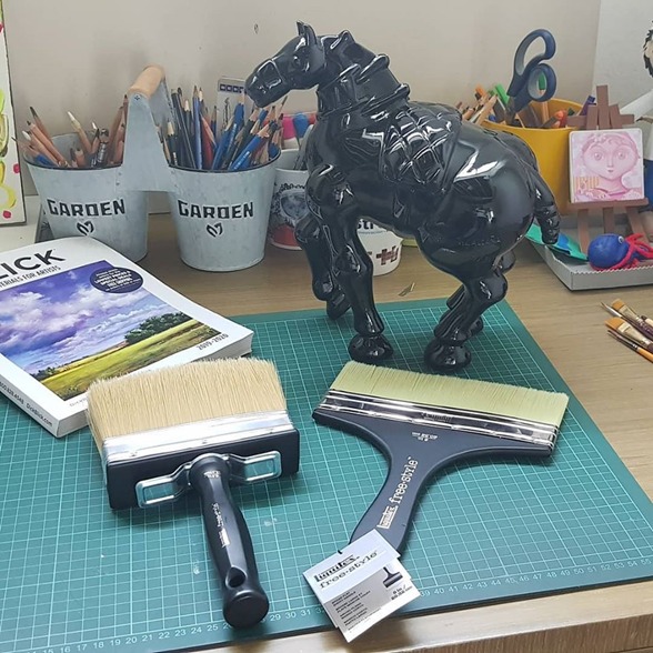Felíz con mis nuevas brochas, gracias a Don Alfonso Tarazona.