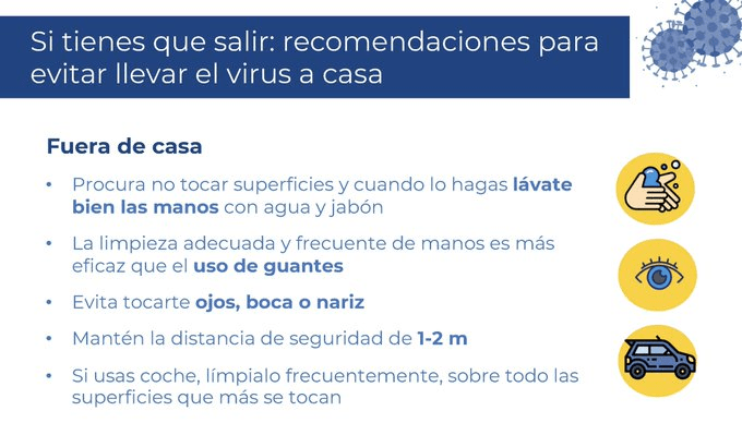 «Quedarnos en casa es la mejor opción, de ello no cabe duda. Sin embargo y dada la importancia de minimizar riesgos hoy compartiremos una relación de recomendaciones y para ello tomamos como referencia principal por su relevancia, por lo que difundimos las recomendaciones que ha venido impartiendo el Ministerio de Sanidad de España las que pueden ser tomadas como referencia en el resto de países».