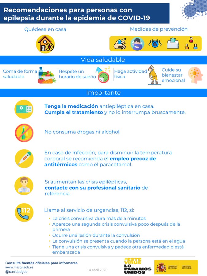 Recomendaciones para personas con #epilepsia durante la epidemia de #COVID19