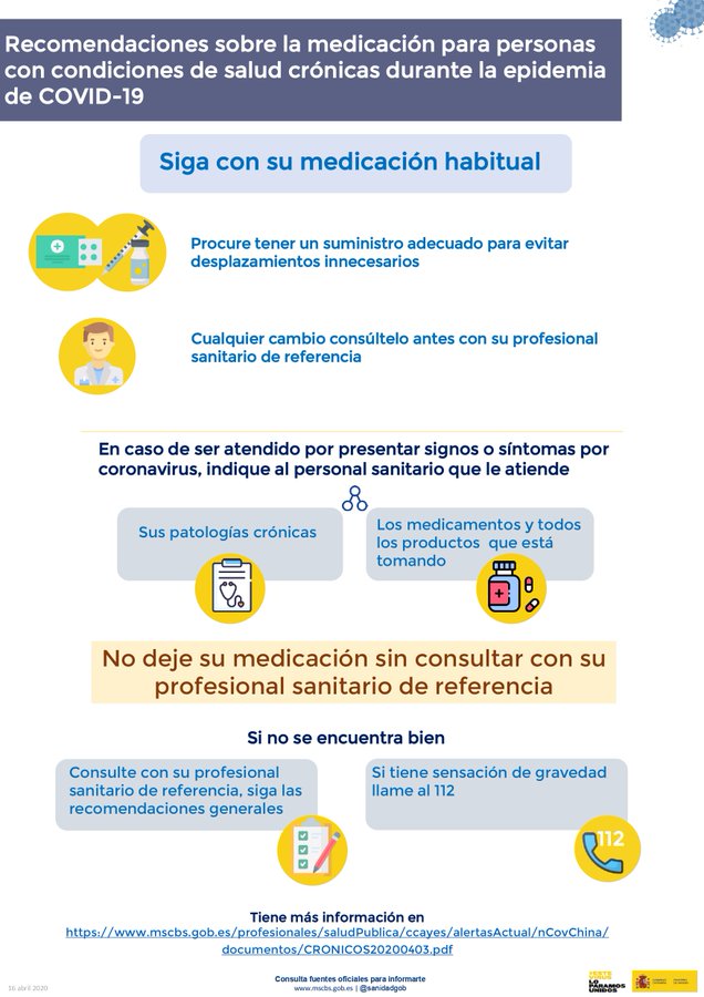 1 Si tienes patologías crónicas sigue con tu medicación habitual durante la epidemia del covid-19.
