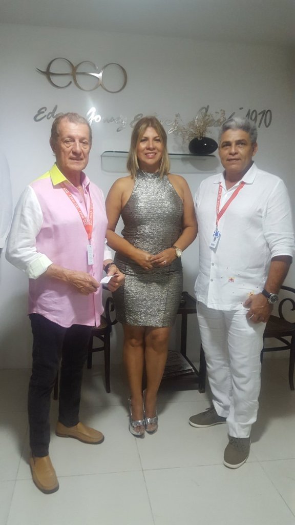 EGO y el Director General de La Agencia Mundial de Prensa de Colombia acompañado de la Ex- Reina de Belleza Betty Peláez