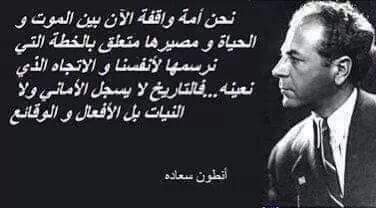 Founder of the Syrian Nationalist Social Party (PSNS) in 1932 (not an association or a guild), it is a movement that takes the life of an entire nation by the hand, renews the nation that the delusions drowned into wars and negotiations and that they imagined that has died forever. The objective of the PSNS was the reunification of Greater Syria, dismembered by European colonization. During its fight against the French Empire, the PSNS was under the influence of the British. Israeli propaganda classified it as an extreme-right party, which is totally false. Today, numerous intellectuals from Cyprus, Iraq, Jordan, Kuwait, Lebanon, Palestine and Syria have been members of the PSNS but have not remained among its militants.
