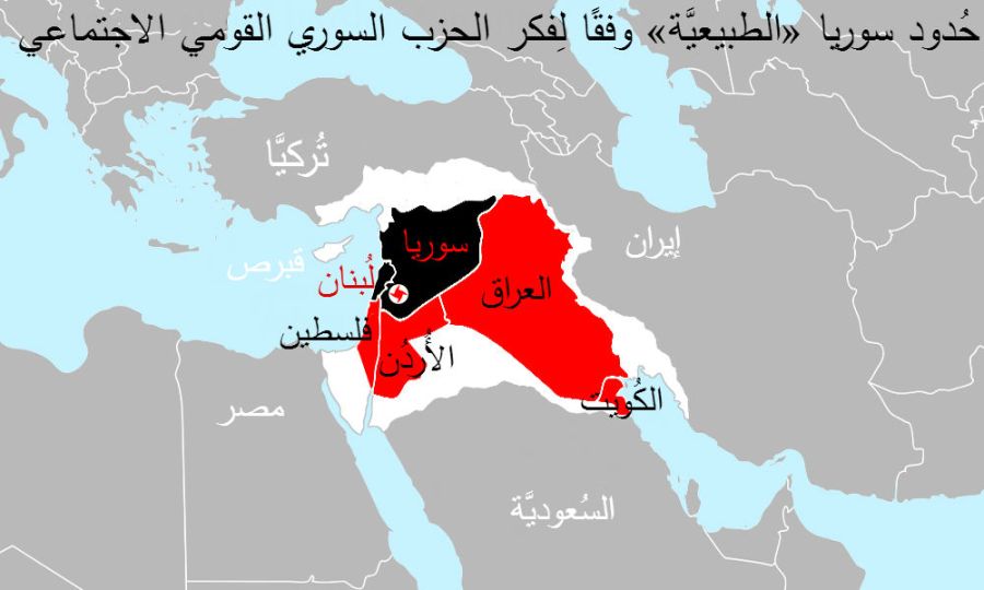 Saadeh and the SSNP, aimed at “Natural Syria,” which included modern Syria, Lebanon, Palestine, Jordan, Iraq, Kuwait, Cyprus, the Sinai Peninsula, the Ahvaz region of Iran, and the Kilikian region of Anatolia.