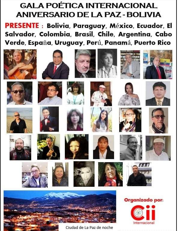 Desde principios de año como es de conocimiento público, nos azota una pandemia y todo a cambiado con el aislamiento social y el distanciamiento, entonces se está utilizando los recursos innovadores que ha inventado el humano para seguir llevando y elevando la cultura a su máxima expresión, Jacqueline Barriga Nava, el departamento de La Paz Bolivia y artistas e intelectuales de 15 países celebrarán una gran gala en honor a este gran gesto de libertad latinoamericana rindiendo tributo a la ciudad de La Paz con bailes folclóricos, música y sin lugar a dudas el plato fuerte será las poesías.
