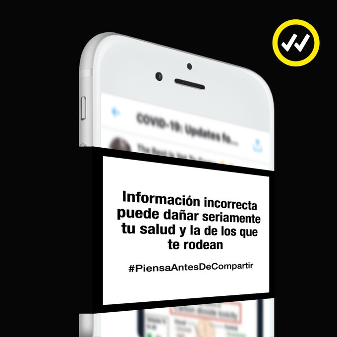 - La información falsa es peligrosa y puede tener consecuencias mortales, especialmente durante la crisis del #coronavirus. Haz una pausa, #PiensaAntesDeCompartir y ayuda a combatir la desinformación sobre la #COVID19 con hechos y evidencias científicas. https://shareverified.com/es