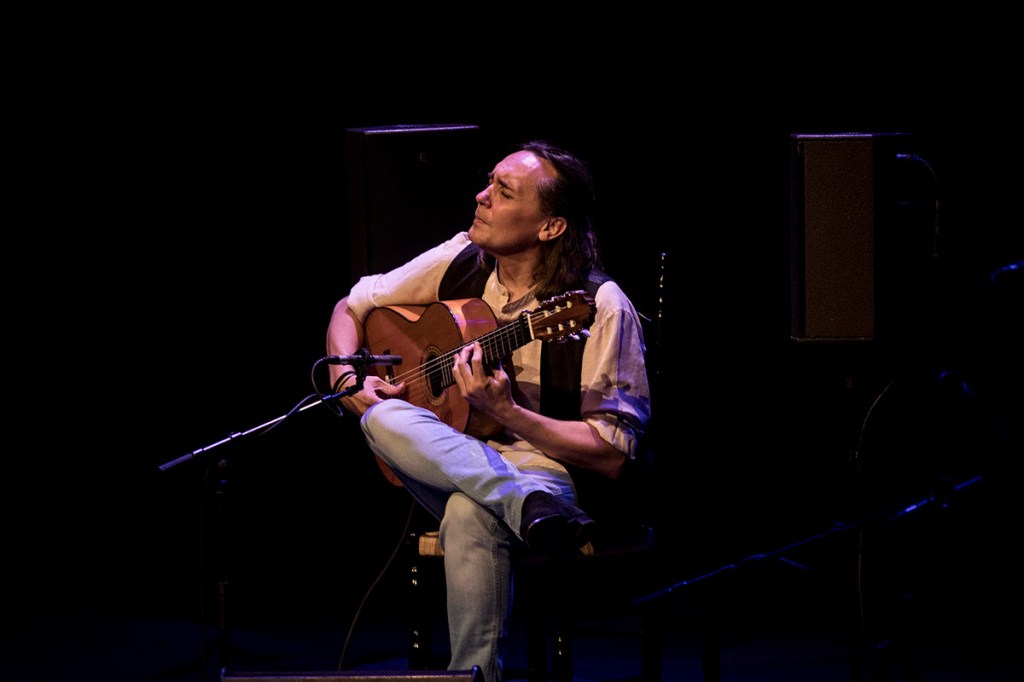 Su dúo con Mari Vizarraga recuerda mucho al dúo que vimos en Improvisao. La incursión como invitada de Remedios Amaya, un regalo del maestro a la veterana trianera. Bailaora, otra sevillana, Marina Valiente. En la percusión Antonio Moreno Polito, primo de Farruquito y su guitarrista Antonio Santiago Ñoño, hijo del famoso cantaor Enrique el Extremeño. Entre todo el elenco, podríamos construir parte de una historia del flamenco.