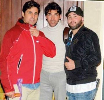 Kiko Rivera Pantoja (cap) accompanied by his Rivera Ordoñez Brothers.