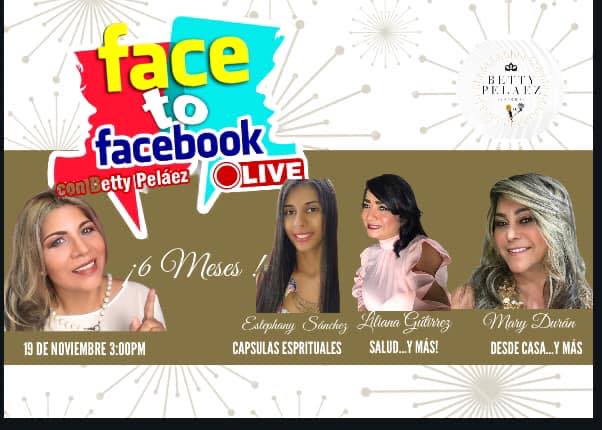 Mañana se cumple ya 6 meses de FACE TO FACEBOOK LIVE con Betty Peláez el programa en streaming en la red social más famosa del mundo como es FACEBOOK con un gran programa, uno de los pioneros en el mundo de dicha red que empezó desde el inicio de esta terrible pandemia con la única intención de mantenernos entretenidos con entrevistas de calidad en diferentes temas de gran interés desde la tranquilidad de tu hogar….