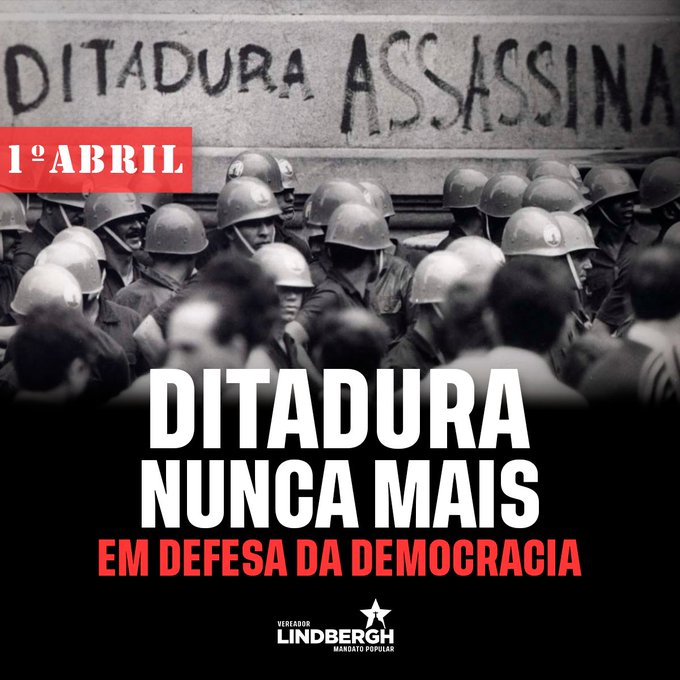 El concejal Lindbergh Farias (PT-RJ) afirmó que todas y cada una de las celebraciones de la dictadura militar de 1964 deben ser rechazadas y que el 1 de abril es el día de las «mentiras que duran 21 años». El congresista también utilizó el hashtag #BolsonaroDay….
