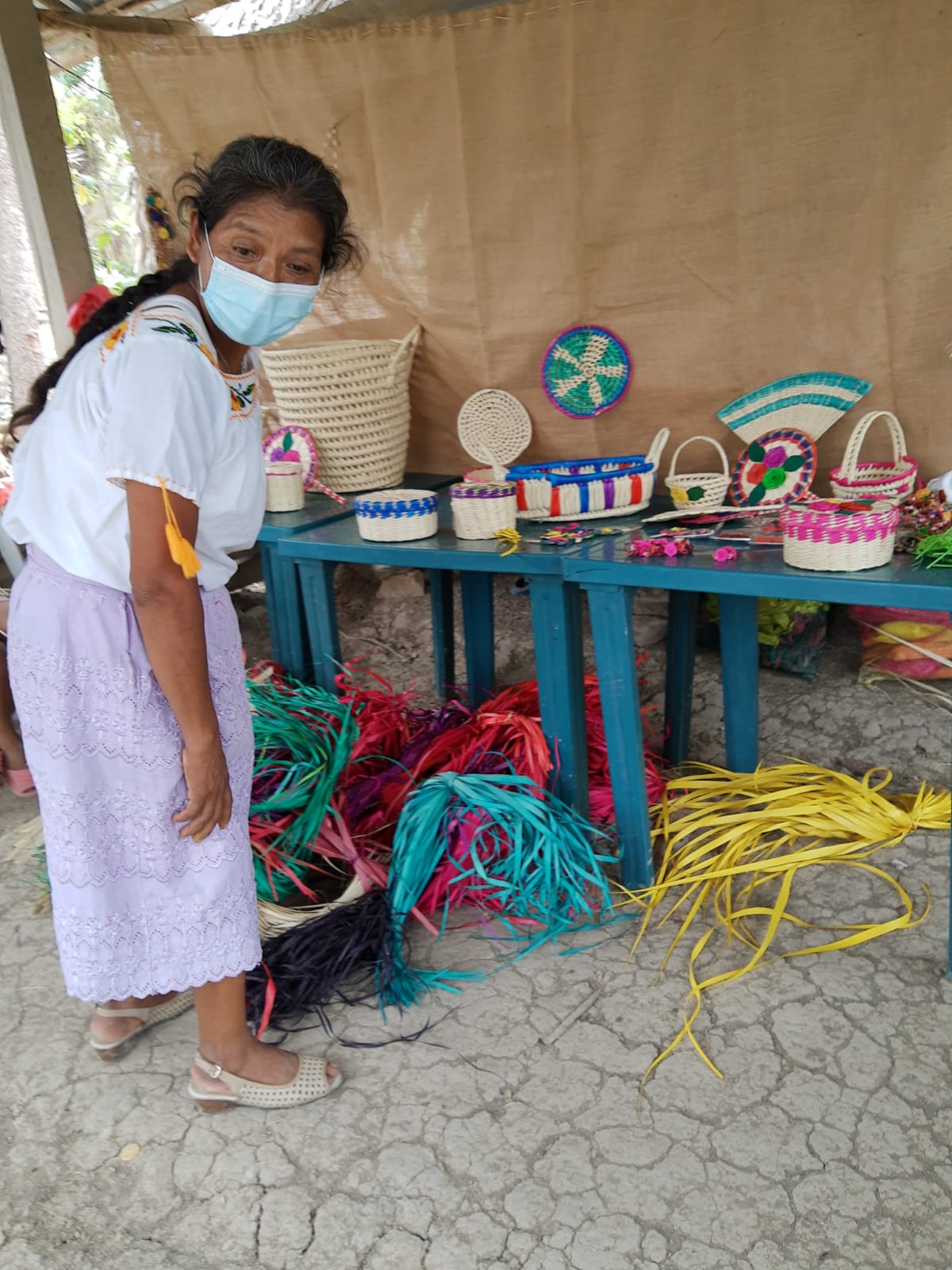 With waste material, she tried to form palm weavings, learned all the details of making different pieces and managed to get natural colors from the plants in her area, also to use artificial colors.