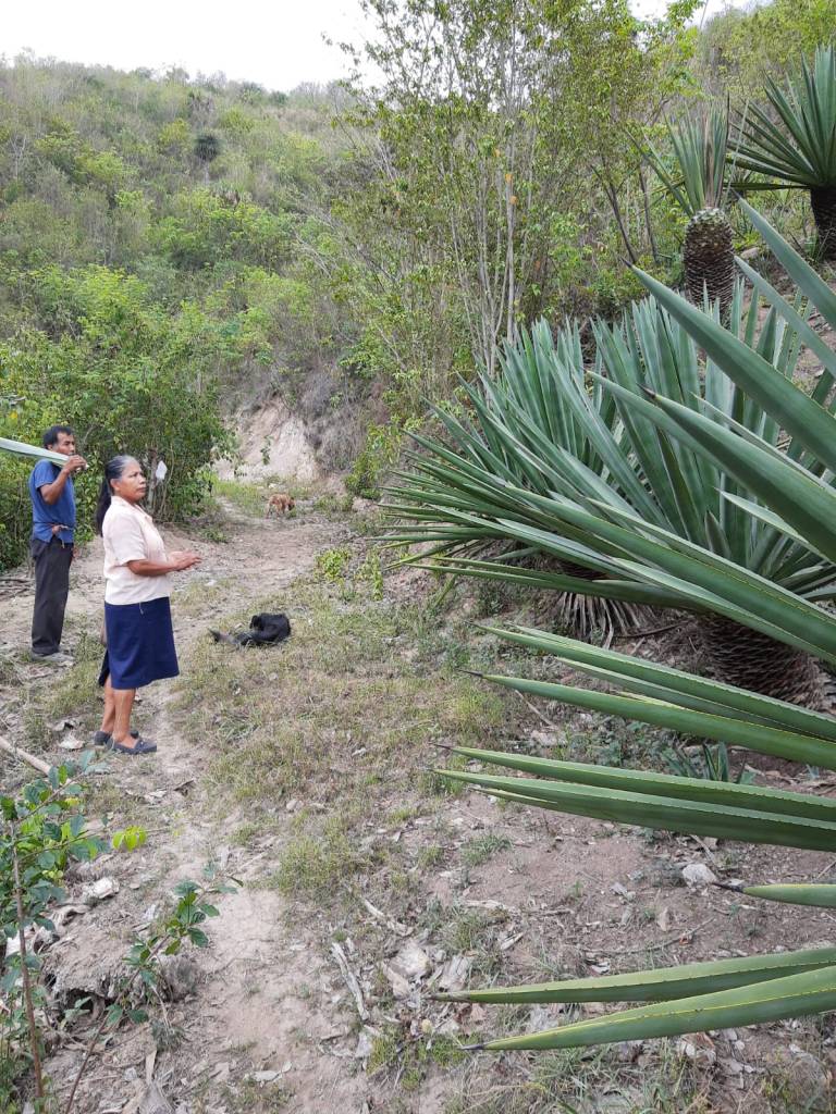 La milpa de ixtle se encuentra cerca de la casa de los artesanos, entre cerros donde no es necesario cuidado especial debido a que las plantas son resistentes y requieren poca agua, la que reciben durante las lluvias.