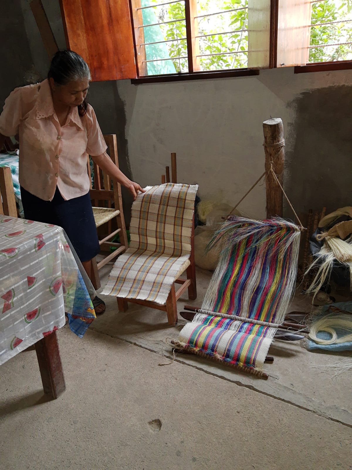 Pintar el ixtle es otro proceso. Colocar los hilos de zapupe en un diseño especial entre dos palos y una base para comenzar otra parte del trabajo, luego a tejer en telar de cintura.