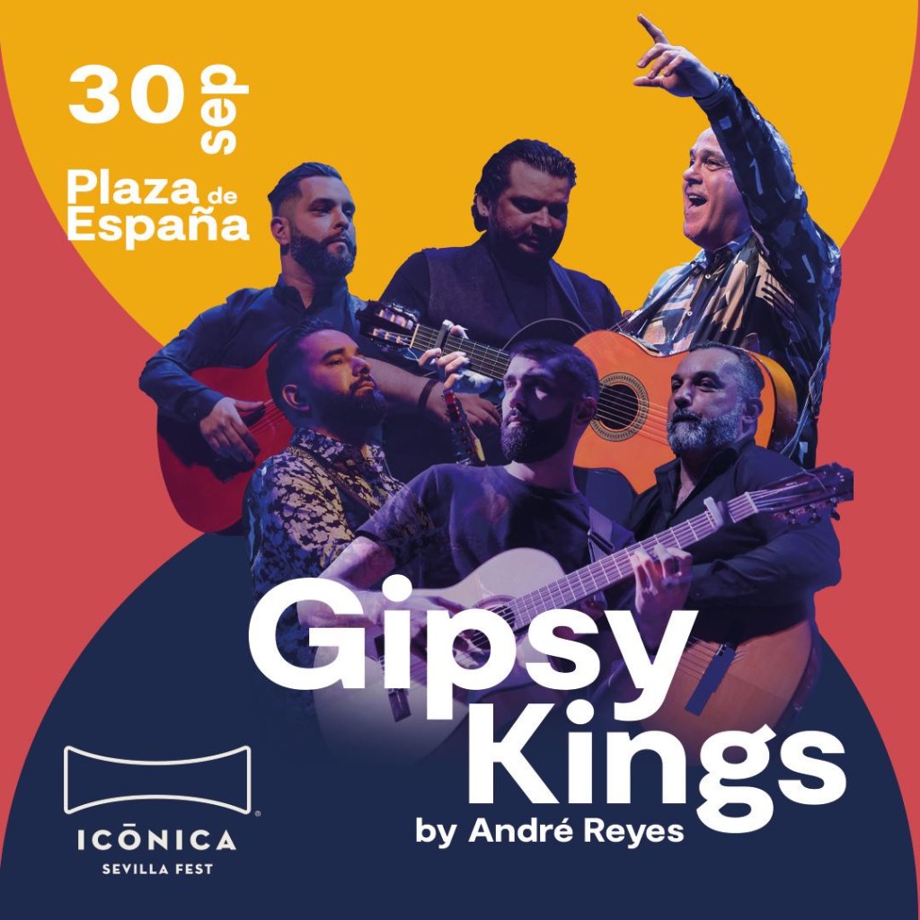 La noche de hoy, jueves 30 de septiembre, el escenario de luz del ICÓNICA Sevilla Fest se abrirá a la potencia rítmica del grupo francés, bandera de la rumba catalana: los Gipsy Kings. A partir de las 22:00 horas los fans de esta formación musical francesa, con orígenes/tintes españoles, disfrutarán del peculiar estilo que los caracteriza, en una consagrada mezcla entre flamenco, pop y rumba catalana. Gipsy Kings es toda una leyenda musical con más de tres décadas de éxitos sobre el escenario. Entre las columnas de la grandiosa Plaza de España sonarán algunos de los temas más representativos de esta banda, como “Bamboleo” , “Volare” o “Djobi Djoba”, entre muchos otros.