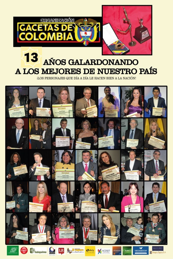 Los Galardones Heterogéneos Gacetas de Colombia son un enaltecimiento a Periodistas, Comunicadores, Líderes Empresariales y Sociales, Emprendedores, Gestores y demás.