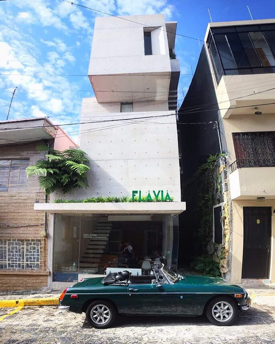 “Flavia se encuentra en Jiménez del Campillo número 42, donde se rescata esta visión de la calle empedrada en una construcción de edificio contemporáneo diseñado por Rafael Pardo, quien a través de estos ventanales fortalece estar abierto al público, seguimos vigentes con las puertas abiertas de lunes a sábado de 9 de la mañana a 9 de la noche”. “Flavia is in Jiménez del Campillo number 42, where this vision of the cobbled street is rescued in a contemporary building construction designed by Rafael Pardo, who through these windows strengthens being open to the public, we remain in force with the doors open from Monday to Saturday from 9 in the morning to 9 at night ”.