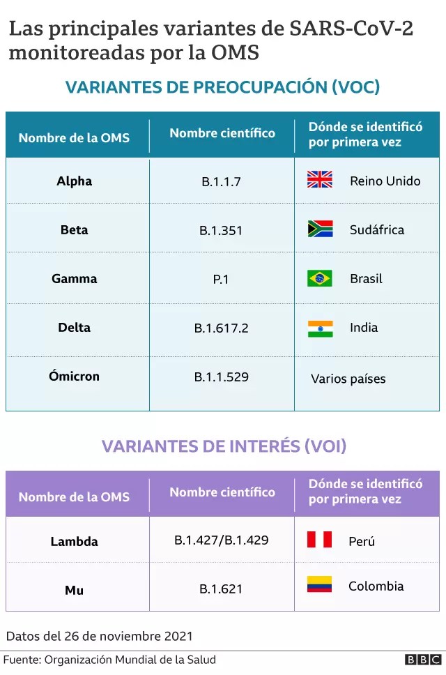 Hasta los inicios del presente mes de diciembre, estas son las cinco VOCs que han surgido hasta ahora.