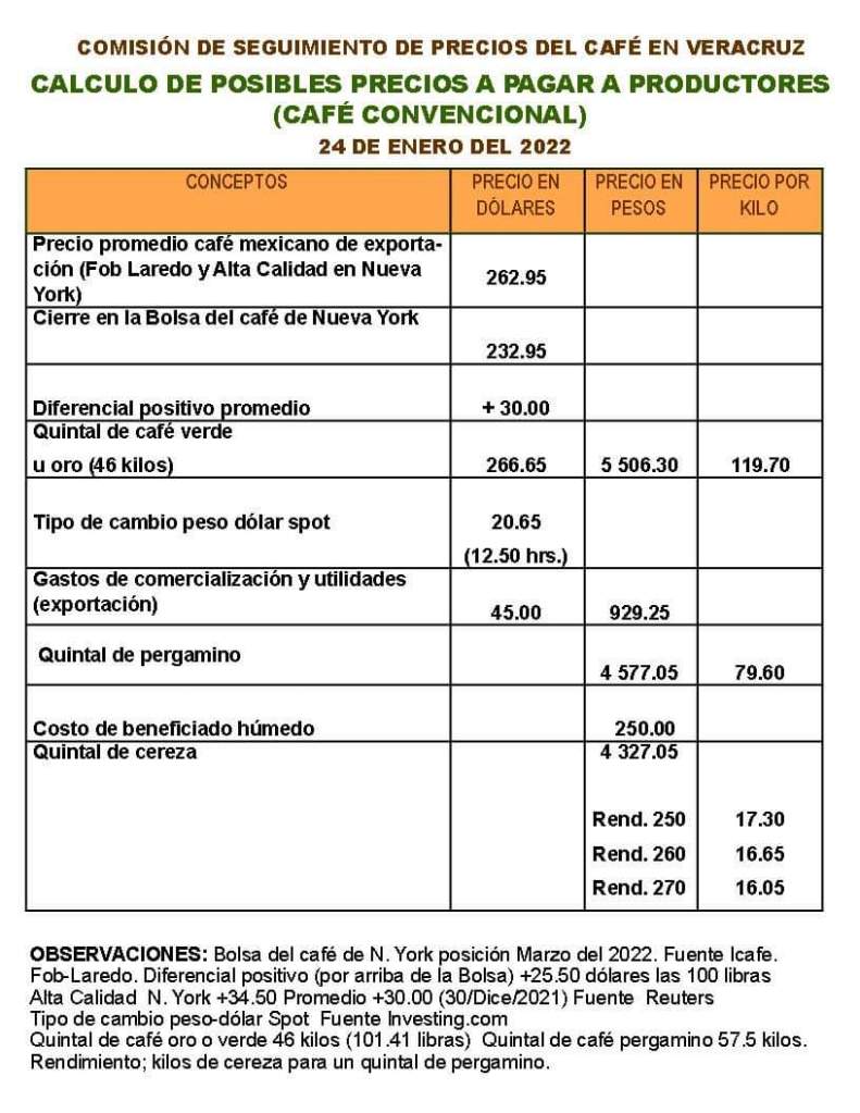 “The Coffee Price Monitoring Commission has been working since August of last year 2021. The dissemination of prices is vital among producers who must necessarily be informed”. «Disseminating prices is something that the authorities should have committed to long ago and done correctly.» «The emphasis on the above is because the companies act with impunity, they do not even make a statement about what they think is the Coffee Price Monitoring table that organized producers make to defend themselves against abuse and submission to buyers.»