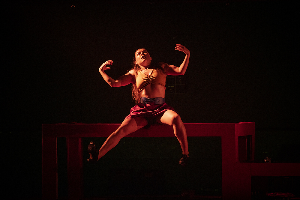 Hemos visto un ritual donde tienen cabida todas las músicas, incluida la atonal. Las láminas pulidas de madera del taller de guitarras adquieren protagonismo y vida para domar simbólicamente a la leona Pericet, enseñándola a confiar en términos de dejarse caer libremente, sin miedos, guiada por el domador luthier Abreu. El espacio es el taller en el que la madera es protagonista. Tapas de guitarra, fragmentos de mástil que sirven hasta de peineta. Aquí representa lo ancestral, espiritual, ritual, resonancia, transmisión oral, corporal y social. Eso es lo que se construye con la danza, las músicas, el vestido, la desnudez, el flamenco y el no flamenco. Un trabajo complejo que rebosa originalidad en su puesta en escena.