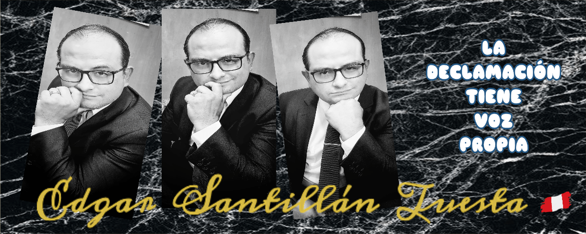 EDGAR SANTILLÁN TUESTA, de nacionalidad peruana, mediana estatura, empático y muy sociable, es un declamador nato por excelencia, todo un artista del mismo. Un profesional que ha sabido darle un plus y un giro importante a la declamación no solo por decir en voz alta bellos textos sino por darle un gran matiz artístico en su interpretación, haciendo gala de esa voz producto de años de trabajo como Locutor Profesional reputado y que además gracias a su gran expertise como Maestro de Ceremonias le sabe poner ese toque protagónico, fluidez y actitud que por supuesto reforzado con su condición actoral le da ese toque de distinción.