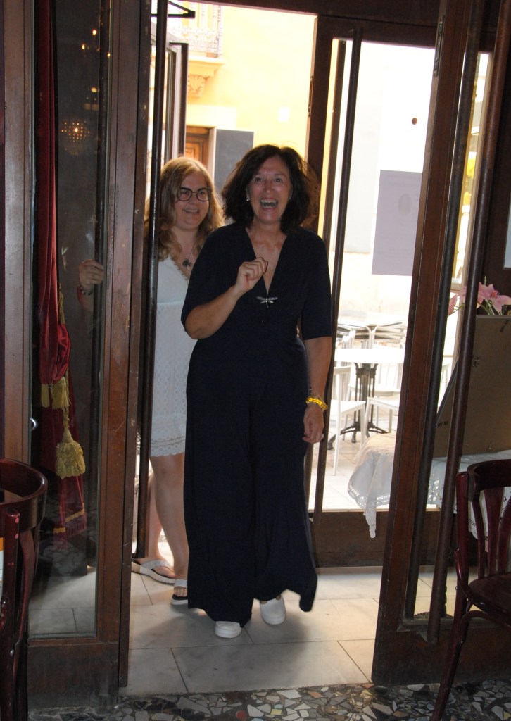 Previo a su entrada, recibida por quienes ya la esperaban en el interior del local con aplausos y en pie, se celebró una comida a la que asistieron un reducido grupo de mujeres seleccionadas por la organización -y a la que quien escribe tuvo el honor de asistir- que acompañó y entretuvo a la premiada durante los preparativos y que sirvió para calentar motores.