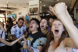 Reunidos en familia o en grupos de amigos en casas, bares o parques en donde se dispuso de pantallas panorámicas y siguiendo todos los rituales existentes para atraer la buena suerte para con su equipo los argentinos se fundieron en un gran grito de Gooolllll con el penal cobrado por el grande Lionel Messi en el minuto 23..Tanto como el segundo grito de gol acompañado del coro apoteósico de «Fideooo.. fideooo, fideooo..» que celebró la gran multitud sonando al unísono cuando Ángel Di María quien recién se incorporaba en este último partido debido a muchas molestias físicas logra ese tanto.