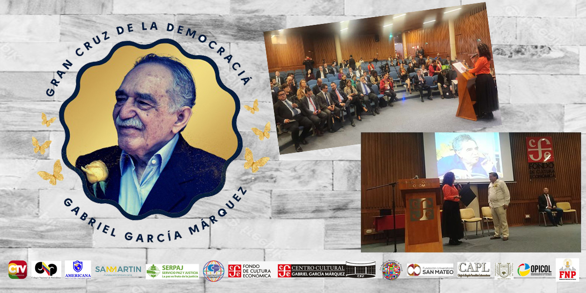 Finally, we thank those who with their noble and valuable gesture made it possible to carry out such a beautiful and comforting event in commemoration of Journalist’s Day, Tribute to Gabriel García Márquez, with the High Distinction Honor, Dignity and Glory, we refer in the first instance to Fondo de Cultura Económica-FCC, of Mexico, as hosts at the facilities of the Gabriel García Márquez Cultural Center, located in La Candelaria, an emblematic place of Bogota, Colombian and Latin American culture.