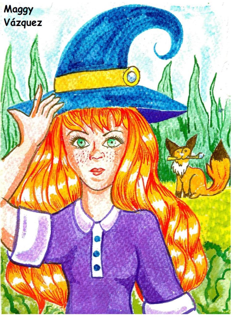 Pero una zorra engañosa la vigilaba, y de su cansancio se aprovechó y poco a poquito su varita y el sombrero de ella alejo. En un bosque encantado, el sombrero de la bruja, la varita de la bruja, una historia contare.