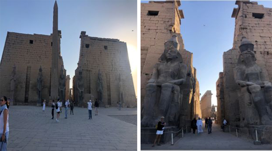 Navegando más al norte, nos detuvimos en la ciudad de Luxor: famosa por ser el mayor museo al aire libre del mundo, esto se debe a que la ciudad moderna está ubicada en el mismo lugar que la antigua Tebas. Literalmente, se ha construido alrededor de dos enormes templos: