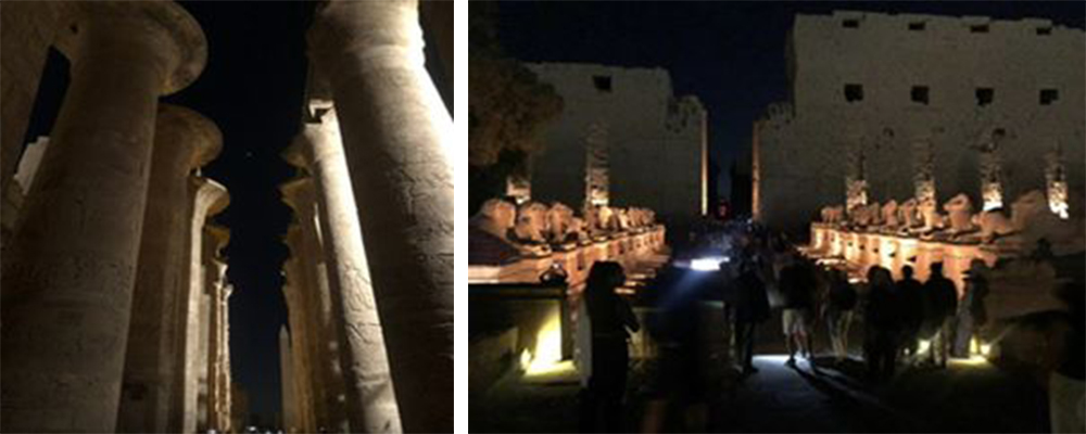 The Karnak Temple Complex: the largest religious complex in ancient Egypt, covering about 200 acres, a pilgrimage site for about 2000 years, it comprises large temples, 134 pillars of the great hypostyle hall, Pylons, Chapels, was believed to be the point of interaction between Amun- Ra and Egyptians a place of worship that provides evidences to the ancient Egyptian religion. The Luxor and Karnak temples are connected through the Sphinx Avenue