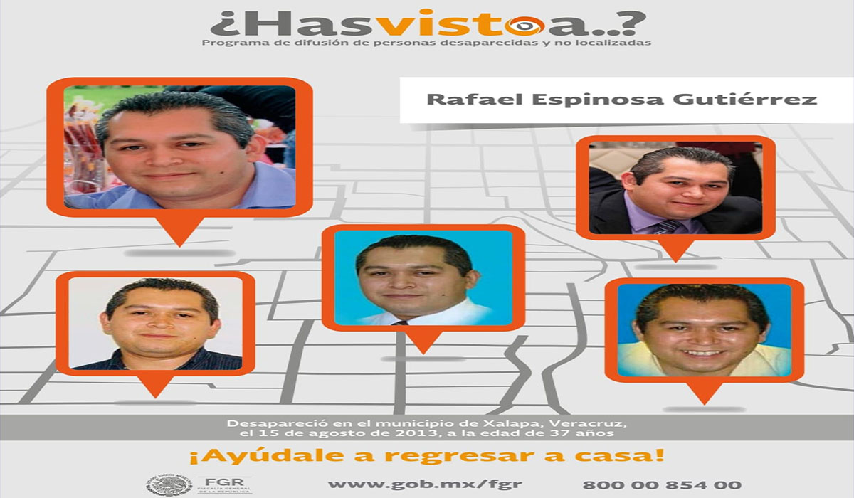“In the State Attorney General’s Office (FGE) of Veracruz, the case of Rafael Espinosa Gutiérrez is filed under number 091/2013; in the Office of the Attorney General of the Republic (FGR) as AP/PGR/SEHDSC/UEBPD/M15/253/2014 Table 28; in the SEIDO as AP/PGR/SEIDO 021/2017, we have been able to walk a little further in the FGR because they have given us the support of searches in places of Actopan, it is a large municipality, at this point after ten years, we presume that He may not be alive anymore.»