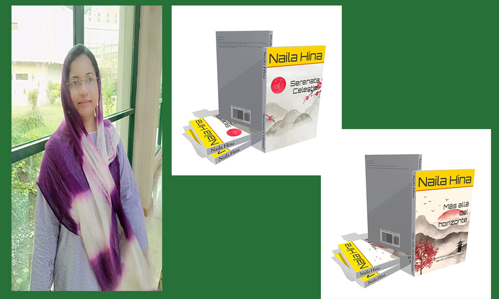 La Dra. Naila Hina visitó muchos puestos de libros expuestos en el sitio en tres salas diferentes.