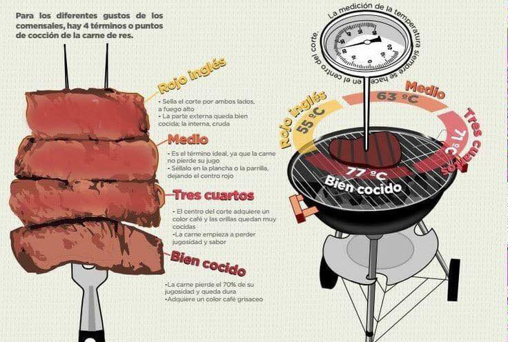 Asegúrate siempre de cocinar la carne a la temperatura correcta, que depende del tipo de carne que estés cocinando, así como de su grosor.