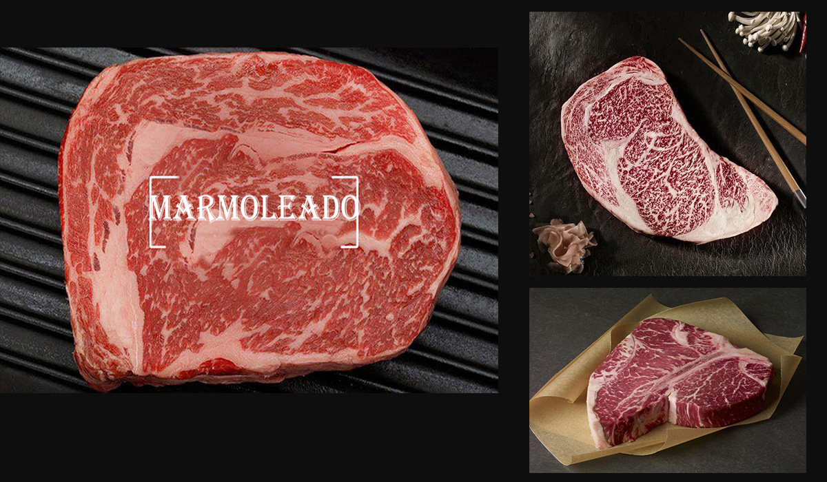 El marmoleado de las carnes o infiltración grasa, es la grasa intramuscular que se encuentra incrustada en el músculo del animal, que le da un sabor único y una textura suave y jugosa a la carne.