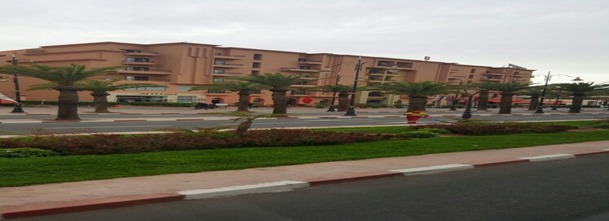 El recorrido desde la “Medina” (Ciudad Antigua) hacia la parte moderna de Marrakech no es muy largo, se podría tomar un taxi, pero es recomendable caminar para apreciar sus construcciones de fachadas rojas, grandes avenidas con anchas veredas adornadas por enfiladas palmeras que hacen que la caminata sea fascinante.