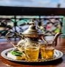 Todas estas delicias siempre acompañadas y servidas con dulces y el tradicional Te de Hojas de Menta, que se vierte tradicionalmente desde lo alto del vaso, siendo esto lo primero que ofrecen al visitante como un gesto de hospitalidad marroquí.