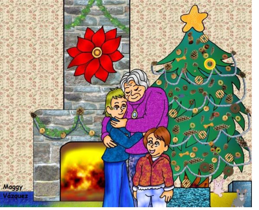 En fechas decembrinas en un lugar muy lejano, donde hacía mucho frío y las casitas eran de madera, donde era necesario tener la chimenea prendida todo el día y la noche por el frío que hacía, tocaron a la puerta de la casa de la abuela, toc, toc, toc. Era don Mario y María que viajaban mucho todo el tiempo, con sus hijos Kenia y Bruno, los cuales no iban muy contentos, ahora sus padres tendrían que viajar más lejos, y se quedarían con la abuela esta Navidad, con ella la pasarían. Kenia y Bruno molestos estaban acostumbrados a muchos lujos, costosos regalos, pero siempre en Navidad la pasaban con extraños. La abuela les abrió con una gran sonrisa: ¡Bienvenidos!